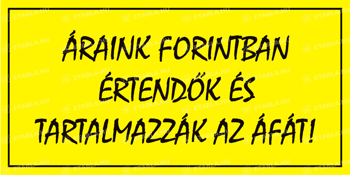 Áraink forintban értendők és tartalmazzák az áfát feliratú tábla. öntapadós vinyl, vagy 3 mm-s habosított pvc tábla A grafikát közvetlenül a táblára nyomtatjuk! Tartós, kopásálló, nem érzékeny a hőmérséklet ingadozásra! |