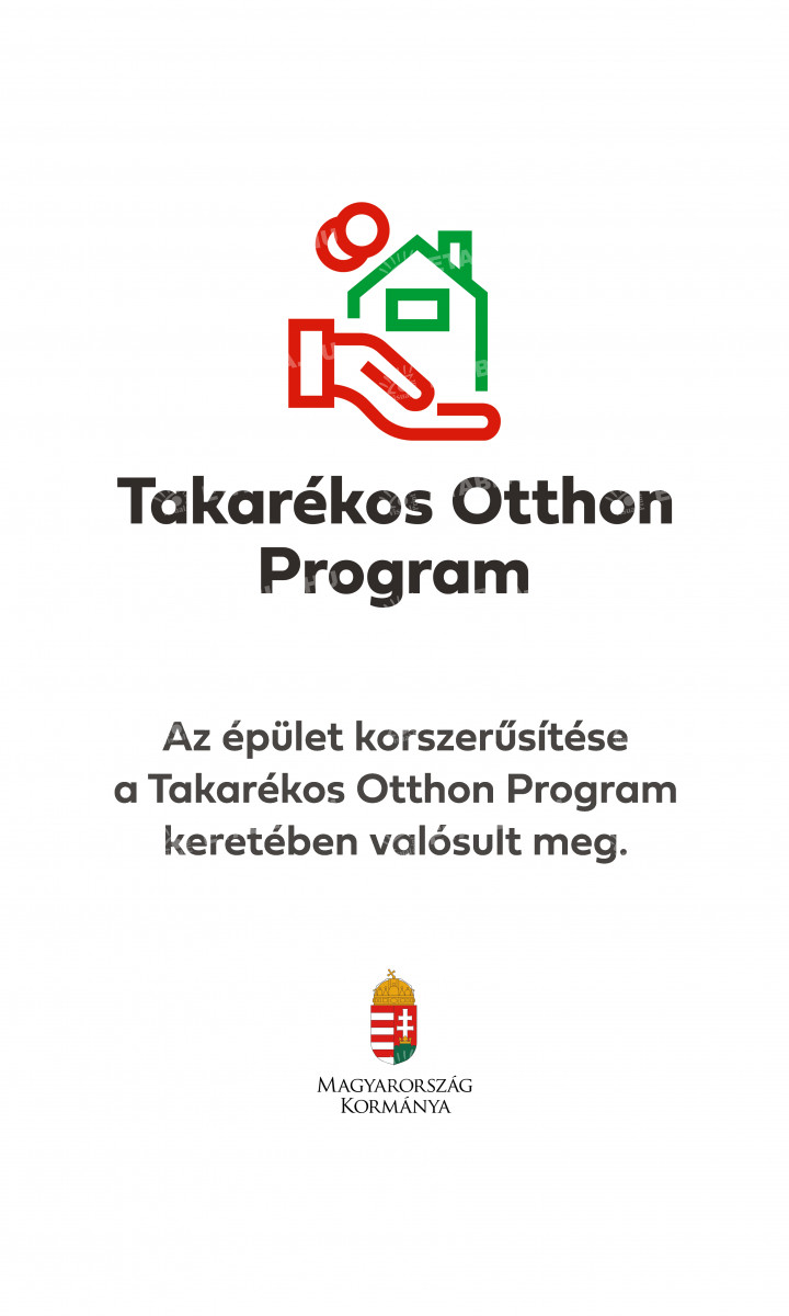 A Takarékos Otthon Program keretében korszerűsített épületeknél kihelyezendő tábla.
